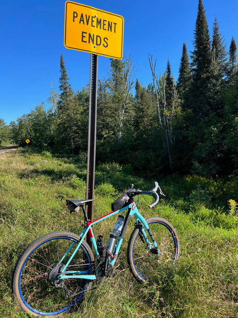This photo says it all as I started the gravel / forest road stretch of my bikepacking adventure from Baltimore to San Diego on back roads. I routed through the UP, WI and MN to see my kids starting college at NMU and St. Scholastica. The photo was taken west of Escanaba as I crossed the UP.